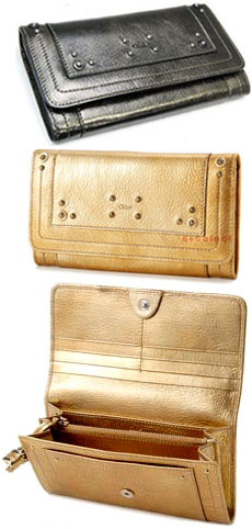 CHLOE WALLET 長財布 小銭入れ付き 2つ折財布PADDINGTONクロエ パディントン ロゴ型押し×スタッズ 南京錠(カデナ)モチーフチャーム7AP006 090ゴールド 091 GOLD
